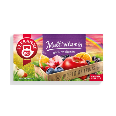 TEEKANNE W. Multivitamin 20db 50g Rövid összefoglaló Frissítő gyümölcsös ízű tea, amelyet multivitaminokkal dúsított formula tesz még élvezetesebbé a nap folyamán. A csomag 20 db filtertes teazacskót tartalmaz, összesen 50 g teaanyagban gazdag összet