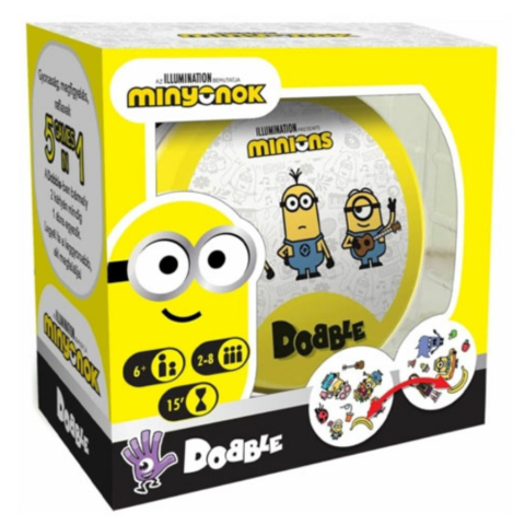 A Dobble játékot és a sárga színű, mindig vicces Minyonokat aligha kell bemutatni a gyerekeknek, így szinte előre borítékolhatjuk, hogy ennek a játéknak hatalmas sikere lesz. A Dobble Minyonok pörgős, zsebre vágható kártyajáték 5-féle játékváltozattal. A kártyákon 8-8 különböző képecske látható, és bármelyik két kártyán mindig van egy ugyanolyan belőlük. A játékosok fela