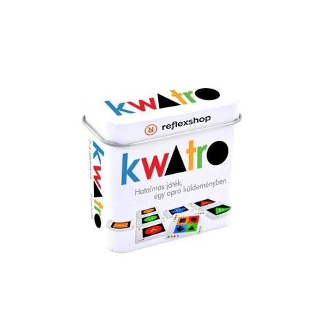 A Kwatro egy remek, díjnyertes kártyajáték, amiben a pakli kártyáin a különböző színek (kék, zöld, piros sárga), mintázatok (háromszög, négyzet, kör, kereszt) és értékek (1–4) kombinációja látható. Egy kártya véletlenszerű felcsapása után minden játékos 4