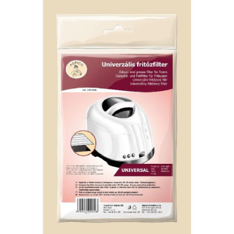 Univerzális tetőfilter fritőzökhöz akítív széngranulátummal töltve, telítettségjelzővel. Megszűri a zsírt és a kellemetlen szagokat.