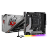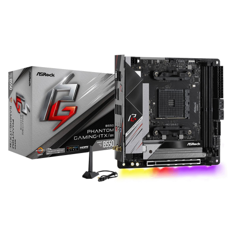 AM4, AMD B550, 2xDDR4, Max:3200MHz, Max:64GB, 1xPCIE16, 4xSATA3, RAID, 5xUSB3.2, 1xUSB3.2C, HDMI, DisplayPort, PS2:1 db, 7.1, 2.5Gb/s LAN, WiFi, Bluetooth, 1xM.2, 1xUltra M.2, Mini-ITX