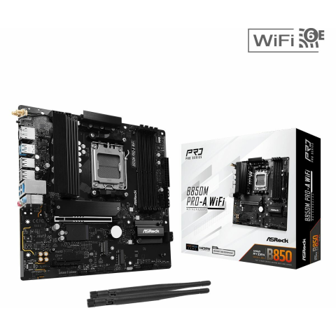 ASRock B850M Pro-A WiFi alaplap: Kompakt erőmű az AM5 foglalattal 🚀 Az ASRock B850M Pro-A WiFi egy Micro ATX méretű alaplap, amely az AMD B850 chipkészletre épül és az AM5 foglalatot használja. Ideális választás kompakt, de nagy teljesítményű számító...