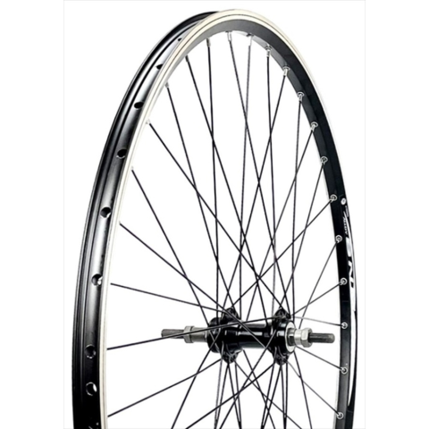 Fűzött kerékpár hátsó kerék.Gépi centrírozás, tolerancia 0,4 mm,SNM alumínium duplafalú fekete felni, 622x24mmAssess fekete tömör-tengelyes alu. agy, menetes racsnihoz36 CN küllő