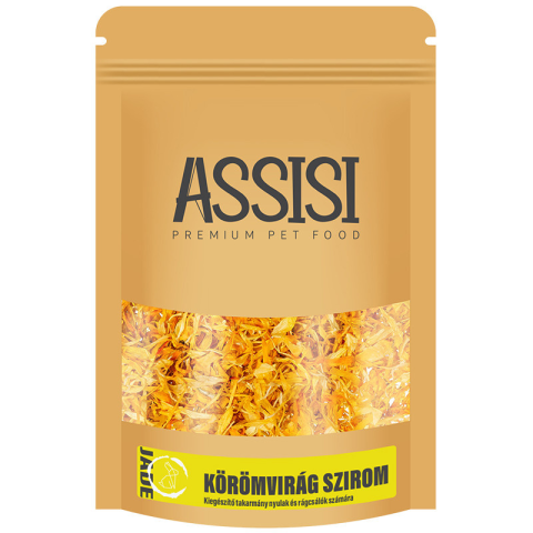 ASSISI Jade körömvirág szirom nyulak és rágcsálók részére Az ASSISI körömvirág (Calendula officinalis) nagyon egészséges, támogatja az immunrendszert, enyhítheti az emésztőrendszeri problémákat, mint például a székrekedést és a hasmenést, gyulladáscsök