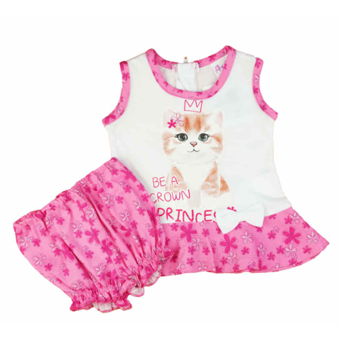 1 kép Asti 2 részes kislány nyári szett rövidnadrággal, tunikával cica mintával