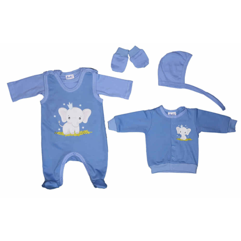 1 kép Asti 5 részes belül bolyhos kisfiú baba szett Elefánt mintával