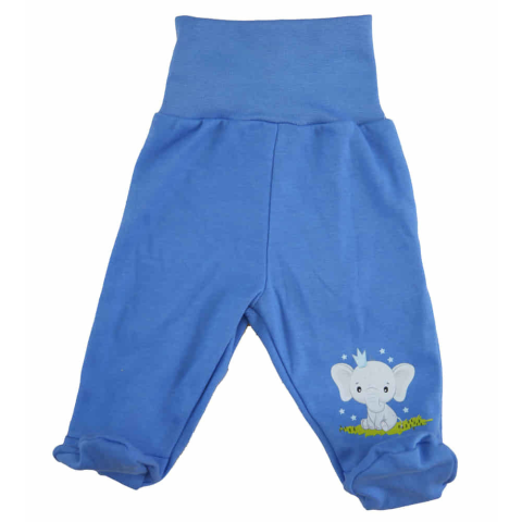 Kényelmes és praktikus baba nadrág, amely biztosan a kedvence lesz a kicsinek. A középkék alapon elefánt mintával díszített darab 100% pamutból készült, így lélegzik az anyag és nem irritálja a baba érzékeny bőrét. A gumis derék rugalmasan alkalmazkodik,