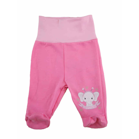 Világos rózsaszínű, elefánt mintás baba nadrág, amely tökéletes választás az apróság gardróbjához. 100% pamutból készült, puha és kényelmes anyagának köszönhetően ideális a sensz ív bababőr számára. A ruhadarab tartós, jól mosható, és hosszú ideig megtart