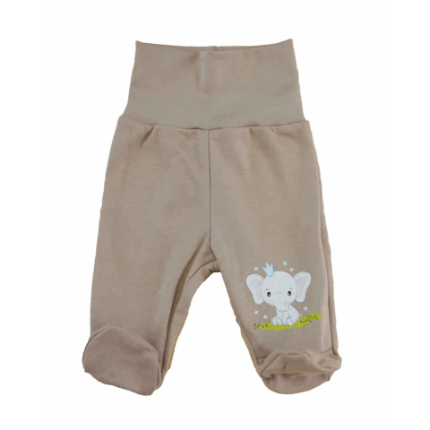 Ez a praktikus baba nadrág lábfejjel az ideális választás a kisbabák számára. Homokszínű alapja univerzális, könnyen kombinálható más ruhadarabokkal, míg az aranyos elefánt minta kedvesen igazítja föl a megjelenést. A 100% pamutvászon puha és légáteresztő