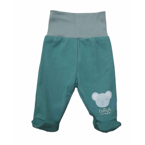 Ebben a zöld babanadrágban a lábfejnél apró cipőcskékkel és Koala mintával díszítve garantáltan cuki lesz a kisded. Magyarországi gyártmány, amely 100% pamutból készült, így hosszú ideig megőrzi szépségét és formáját. A rugalmas dereka puha és kényelmes,