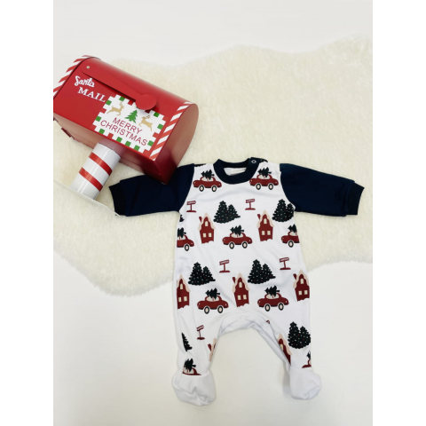 1 kép Asti Belül bolyhos hosszú ujjú baba rugdalozó karácsonyi mintával
