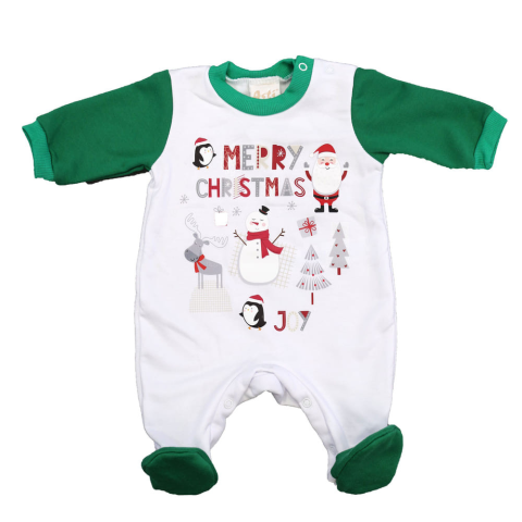 1 kép Asti Belül bolyhos hosszú ujjú baba rugdalozó karácsonyi mintával