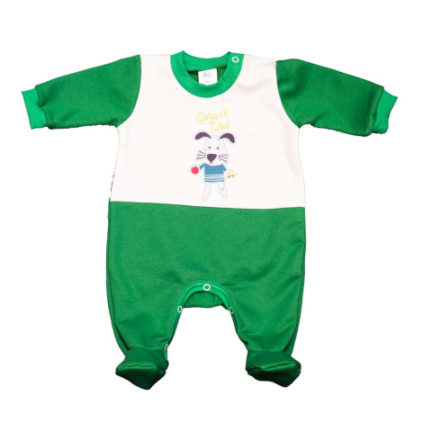 A kényelem és a stílus tökéletes harmóniáját nyújtja ez hosszú ujjú kisfiú rugdalózó, amelyet aranyos kutyás mintával tettünk még vonzóbbá. A dinamikus zöld szín és a játékos kutyamotívum garantáltan kedvenc viseletévé válik. A belseje puha, bolyhos anyag