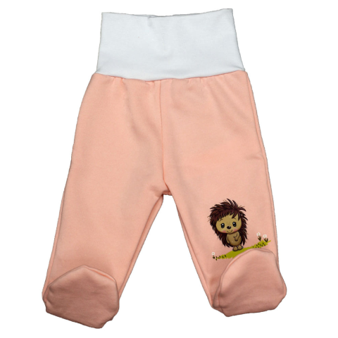 Puha, meleg és kényelmes – ez a belül bolyhos pamut baba nadrág ideális választás a hidegebb időszakokra. A barack színű modell sünis mintájával a kislányok biztosan ellenállhatatlanok lesznek, a vidám minta pedig még szürke napokon is jó kedvre derít. Az