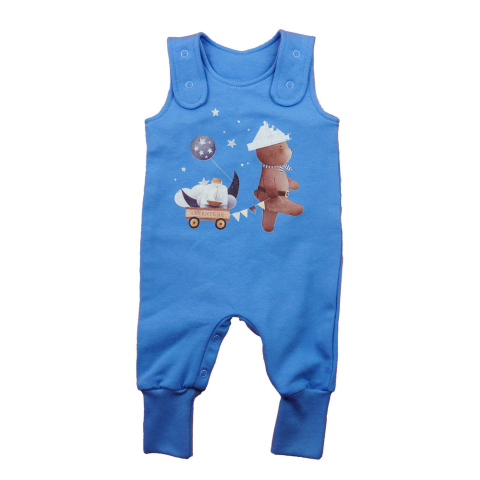 Ez a fiús árnyalatban készült ujjatlan rugdalózó ideális választás az őszre és télre. Az aranyos állatos minta vidám megjelenést ad, a belül bolyhos anyag pedig extra meleget biztosít. A 2:1 méretű kialakítás különösen praktikus: mind a kantár, mind a láb