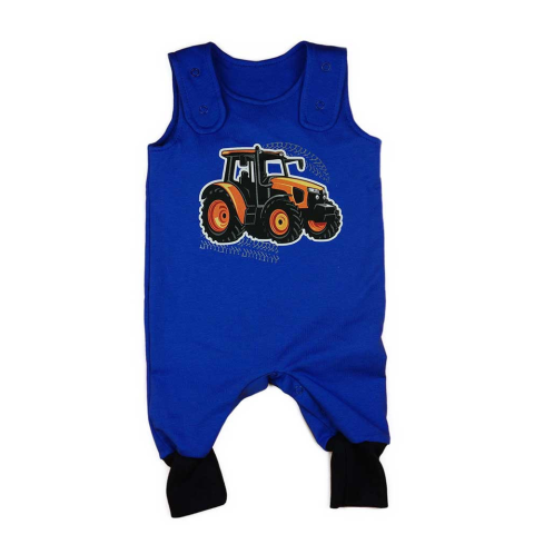 Kellemes királykék rugdalózó, amely vidám traktor nyomattal díszített és belülről puha, bolyhos anyaggal bélelve. A termék kettő méretben állítható, így a láb és a kantár hossza egyaránt igazítható a gyermek növekedéséhez, lehetővé téve, hogy több éven át