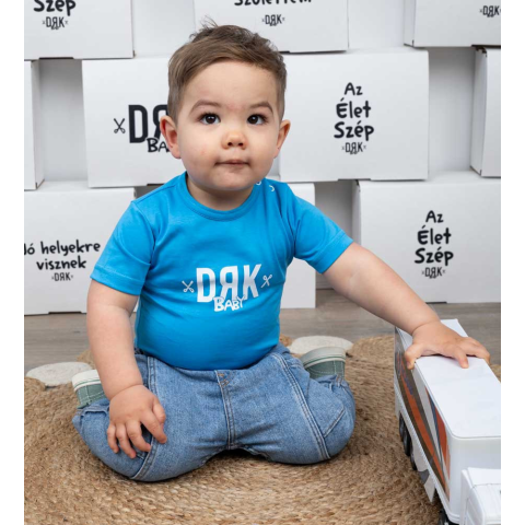 Egy stílusos, DRK felirattal díszített baba body, amely a kisbaba kényelme és praktikussága szempontjából lett kialakítva. Az egész test 100% tiszta pamutt alapanyagból készült, amely puha tapintású, színtartó és formastabil, valamint megbírja a rendszere