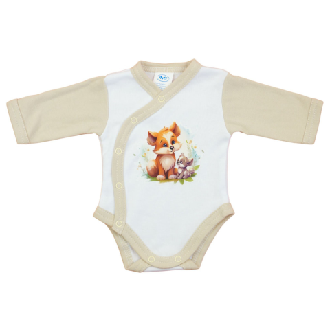 Erdei állatok mintájú hosszú ujjú baba body, amely elöl praktikus patentokkal szerelékes. Puha, lélegzető 100% pamut anyagból készült, amely biztosítja a kisbaba komfortját és jó közérzetét. Az I. osztályú minőség garantálja az alapanyagok kiválóságát és
