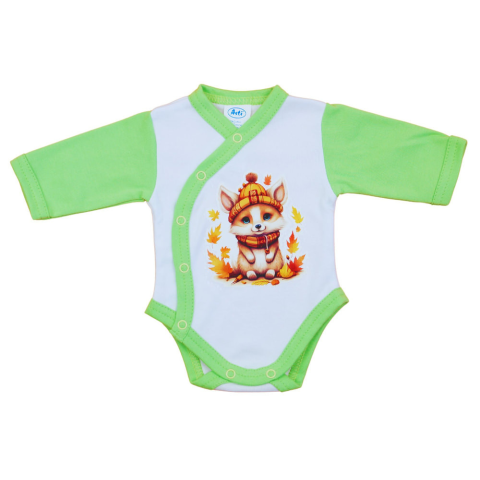 1 kép Asti Elöl patentos hosszú ujjú baba body Erdő állatai mintával