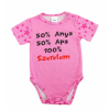 Vállon patentos, pink színű baba body, amely feliratos mintájával egyaránt vicces és aranyos. A testhez közeli, kényelmes viseletet biztosít a 100% pamut szövete, amely puha és lélegzető. A nikkelmentes patentok allergiamentesek, így biztonságosan használ