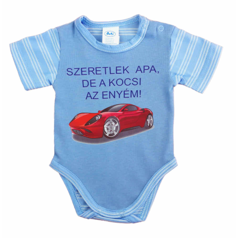 Vállon patentos, kék színű baba body, amely tökéletes társa lesz a kisbabád mindennapi viselkedének. A feliratos dizájn egyedi, vidám megjelenést kölcsönöz, miközben játékos és kedves karaktere garantálja a mosolyt az arcokra. Az anyag teljes egészében te