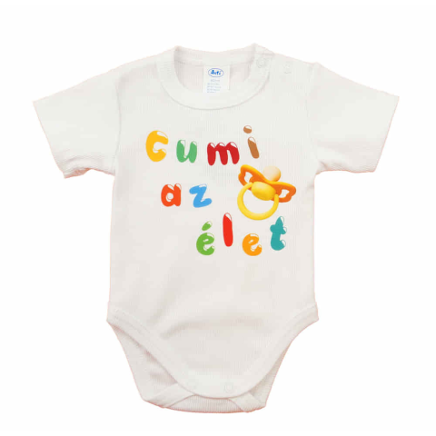 Feliratos rövid ujjú baba body, mely vállon patentos kialakítással készült. A megjelenésén lévő szöveg egyaránt aranyos és humoros, így a babád garantáltan szemet vonzó lesz. A ruhadarab nikkelmentes patentokkal van ellátva, így biztonságos az érzékeny ba
