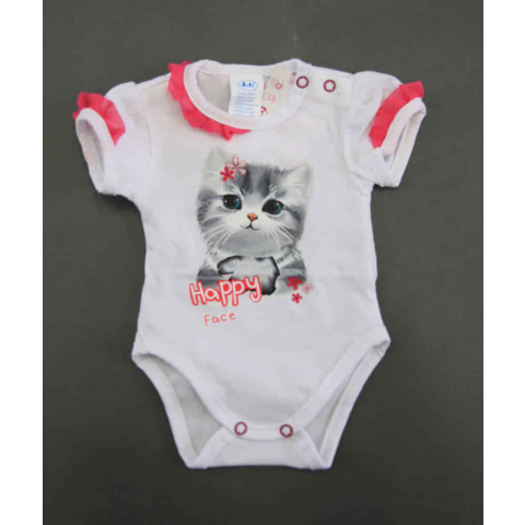 1 kép Asti Fodros rövid ujjú baba body cuki Cicás mintával