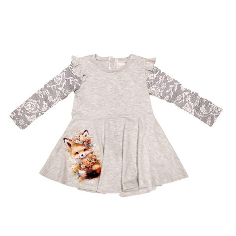 Egy különleges eseményre készülsz, és szeretnéd, ha a kislányod igazán ragyogni tudna? Ezzel a hosszú ujjú lányka ruhával biztosan megtörténik! A csipke hatású, pörgős szoknya kedves mintájával és fodros ujjaival játékos, mesebeli megjelenést kölcsönöz mi
