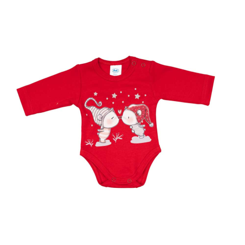 Kisbabák ruhatárának praktikus alapdarabja ez a hosszú ujjú body, amely kedves karácsonyi manó mintával díszített. Tökéletes választás a hideg téli napokra, mivel a minőségi, bababarát 100% pamutból készült anyag kellemes melegséget nyújt és jól tűri a gy