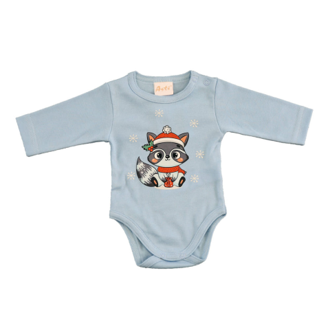 Tökéletes választás a hideg téli napokra: ez a hosszú ujjú baba body karácsonyi mintával díszített, praktikus alapdarabja lesz picid ruhatárának. A csinos télapó és mosómedve motívum biztosan tetszeni fog, míg a 100% pamutból készült anyag puha és bababar