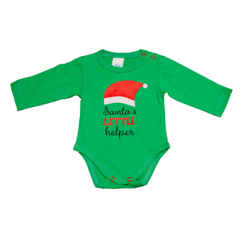 Kisbabák ruhatárának nélkülözhetetlen alapdarabja ez a hosszú ujjú body, amely vidám karácsonyi mintával díszített. Tökéletes választás a hideg téli hónapokra, amikor extra melegen kell tartani a kicsiket. A body 100% pamutból készült, ami puha, légáteres