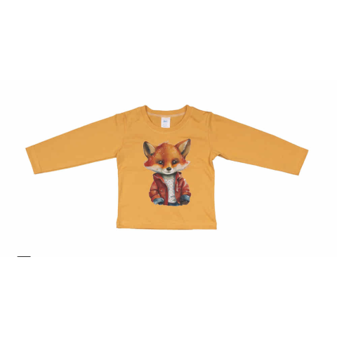 Egy igazán vagány választás ez a hosszú ujjú fiú póló, amely karakteres róka mintájával garantáltan felkelti a figyelmet. Az okker alapszín tökéletesen alkalmas óvodai hétköznapokra és játszótéri abakadokra, illetve farmenadraggal kombinálva is érdekes, ü