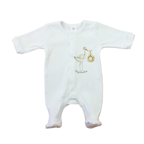 A kényelem és stílus harmóniáját tükrözi ez a hosszú ujjú rugdalózó, amelyet kedves gólyás motívum díszít. Puha, vékony pamutból készült, amely garantáltan babaruhára jellemző puhaság és lélegzőképesség biztosítja. Az elülső patentos csatlakozás könnyebbé
