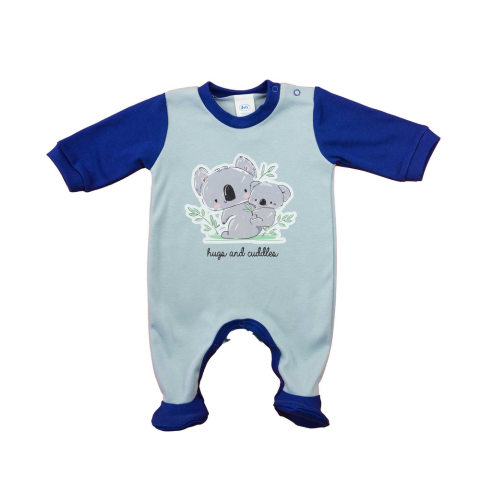 Kényelmes hosszú ujjú rugdalózó, amely aranyos Koala maci mintával díszített. A puha, vékony pamutból készült anyag ideális az apró testeknek, biztosítva a szabad mozgást és kellemetes viseletet egész nap. A vállán és a lábak között található patentok lén