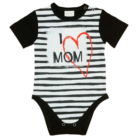 1 kép Asti "I LOVE MY MOM" feliratos rövid ujjú baba body fekete