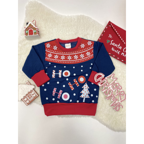 A sötét kékre festett, hópelyhes mintás karácsonyi pulóver belseje kellemes bolyhos felülettel rendelkezik, amely extra meleget és kényelmet nyújt a kisbabáknak. A vastag anyagösszetétel – 65% pamut és 35% poliészter – biztosítja, hogy a gyermek bőre szám