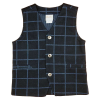 Szürke kockás minta teszi különlegessé ezt az alkalmi mellényt, amely tökéletes választás kisfiúk számára különleges alkalmakra vagy családi eseményekre. A mellény elöl gombokkal záródik, és praktikus zsebekkel rendelkezik, ahová a gyermek a kedvenc dolga