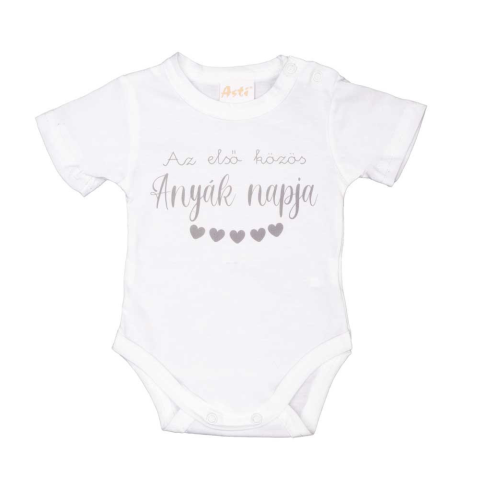 Egy igazi kedvesség az Anyák napra: fehér, rövid ujjú baba body azzal a szívmelengető felirattal, hogy "Én vagyok a legjobb Anyák napi ajándék". A bodysuit garantáltan kényelmes viselet a kisbabának, hiszen 100% pamutból készül, amely puha és bőrbarát.