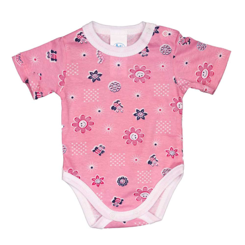 A rövid ujjú baba body vidám virágos mintájával tökéletes alapdarab a legkisebbeknek. A cuki minta játékos és fesztelen, amely jól kombinálható más ruhadarabokkal, így a babák öltözéke mindig friss és trendi marad.