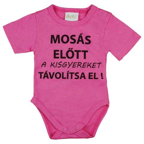 1 kép Asti Rövid ujjú baba body "Mosás előtt a kisgyereket távolítsa el!" felirattal