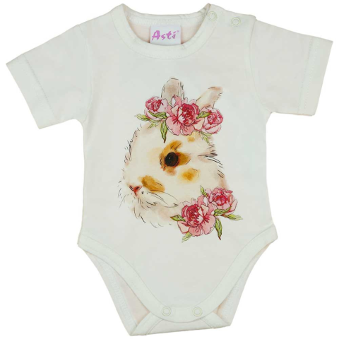 1 kép Asti Rövid ujjú baba body nyuszis mintával natúr