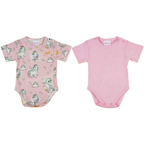 Ez a rövid ujjú baba body szett két darab kényelmes bodyt tartalmaz, amelyek vállon patentos zárásnak köszönhetően könnyen fel- és levehető. A bodyk 100% pamutból készültek, amely lélegző és puha anyag, ideális a baba érzékeny bőrének. A vidám mintázat ke