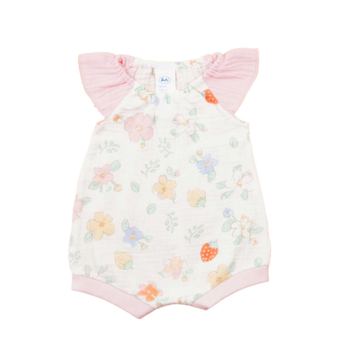 Tündérien aranyos és kényelmes viselet kislányoknak a meleg nyári napokon - ez a virágmintás, rövid ujjú baba napozó. A vékony pamutanyag biztosítja a komfortérzetet, míg a magyar gyártás garantálja a minőséget. A termék 100% tiszta pamutból készült, mely