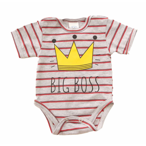 Öltöztesd fel kisbabádat ezzel a szürke csíkos bodyval, amely a "Big Boss" felirat által még játékosabbá válik! A rövid ujjú darab vállánál mindkét oldalon patenttal készült, így a fel- és levétés egy-két mozdulat alatt megoldható. Az alsó részen lévő dup