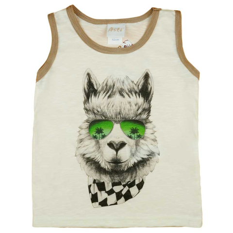 Ez a fehér kisfiú atléta trendy, egyedi megjelenésével biztosan tetszeni fog a kicsiknek. A nyakrész és ujjak divatos dupla szegélyezésével még kedvesebbé válik, de igazi főszerepet a vidám láma fej játssza az elől – ez garantáltan mosolyt csal az arcára.