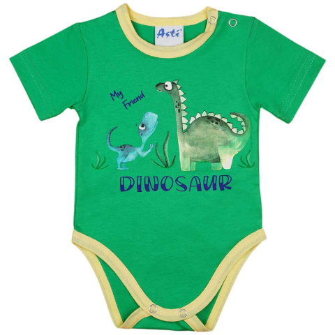 1 kép Asti Rövid ujjú kisfiú baba body dinós mintával zöld