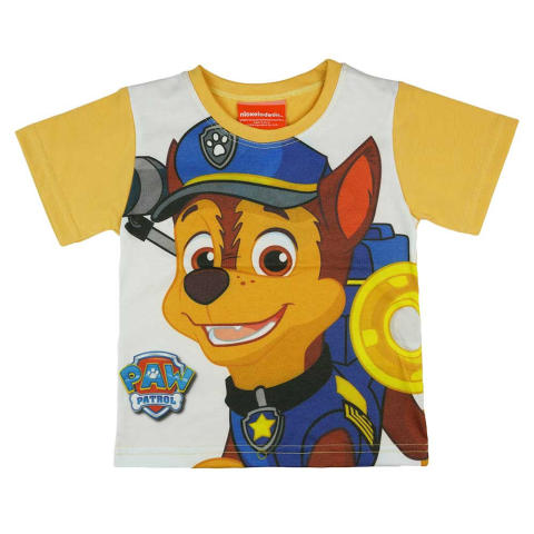 Sárga, rövid ujjú kisfiú póló a kedvelt Mancs őrjárat karakterekkel. A ruhadarab 100% pamutból készült, amely biztosítja a maximális kényelmet és légáteresztőséget az aktív játékkban. Az I. osztályú minőséget garantálva, a póló hosszú ideig megállja a hel
