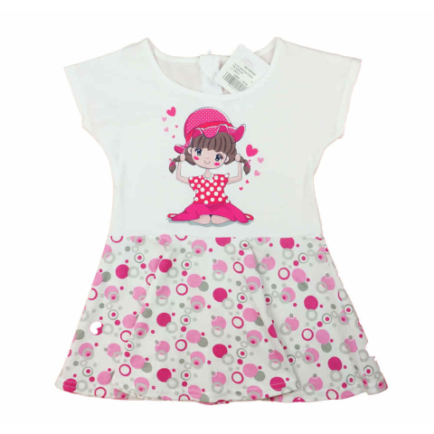 1 kép Asti Rövid ujjú pamut kislány ruha, pörgős szoknyarésszel
