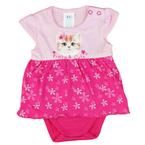 1 kép Asti Rövid ujjú szoknyás baba body cuki Virágos cica mintával