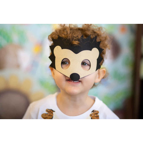 Puha textilből készült sünis álarc, amely gumis pánttal rögzíthető. Tökéletes választás az állatok szerelmeseinek és a természet iránt érdeklődő gyermekeknek. Az álarc könnyű, kényelmes viselet, és a rugalmas pánt gondoskodik arról, hogy biztonságosan a h